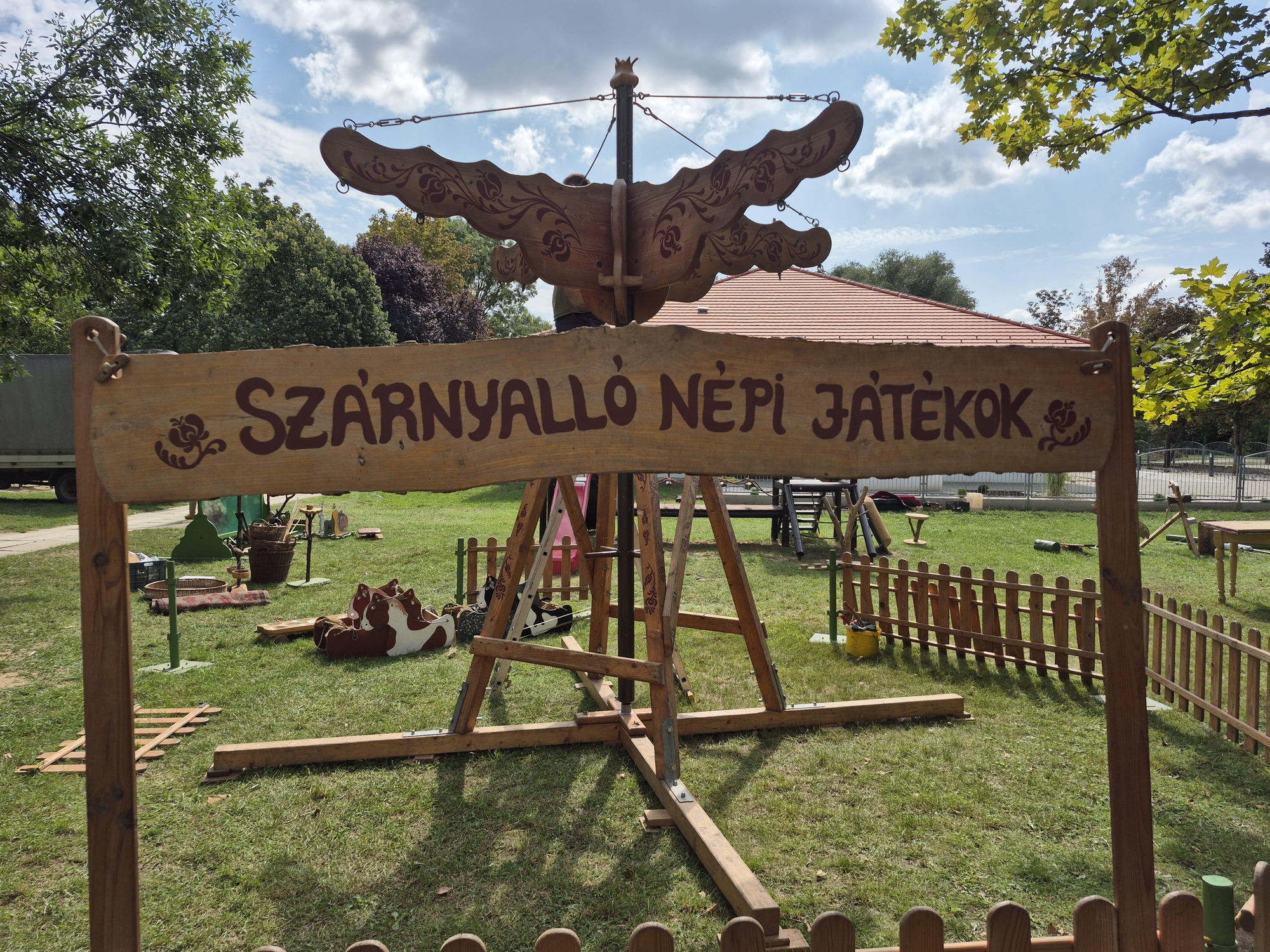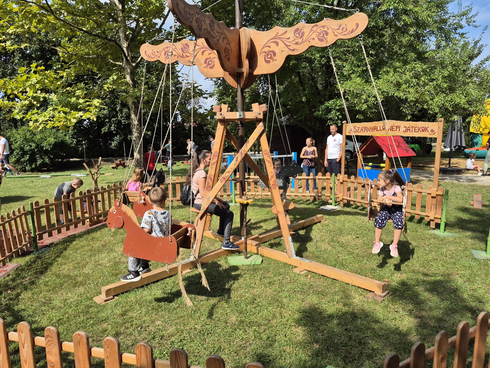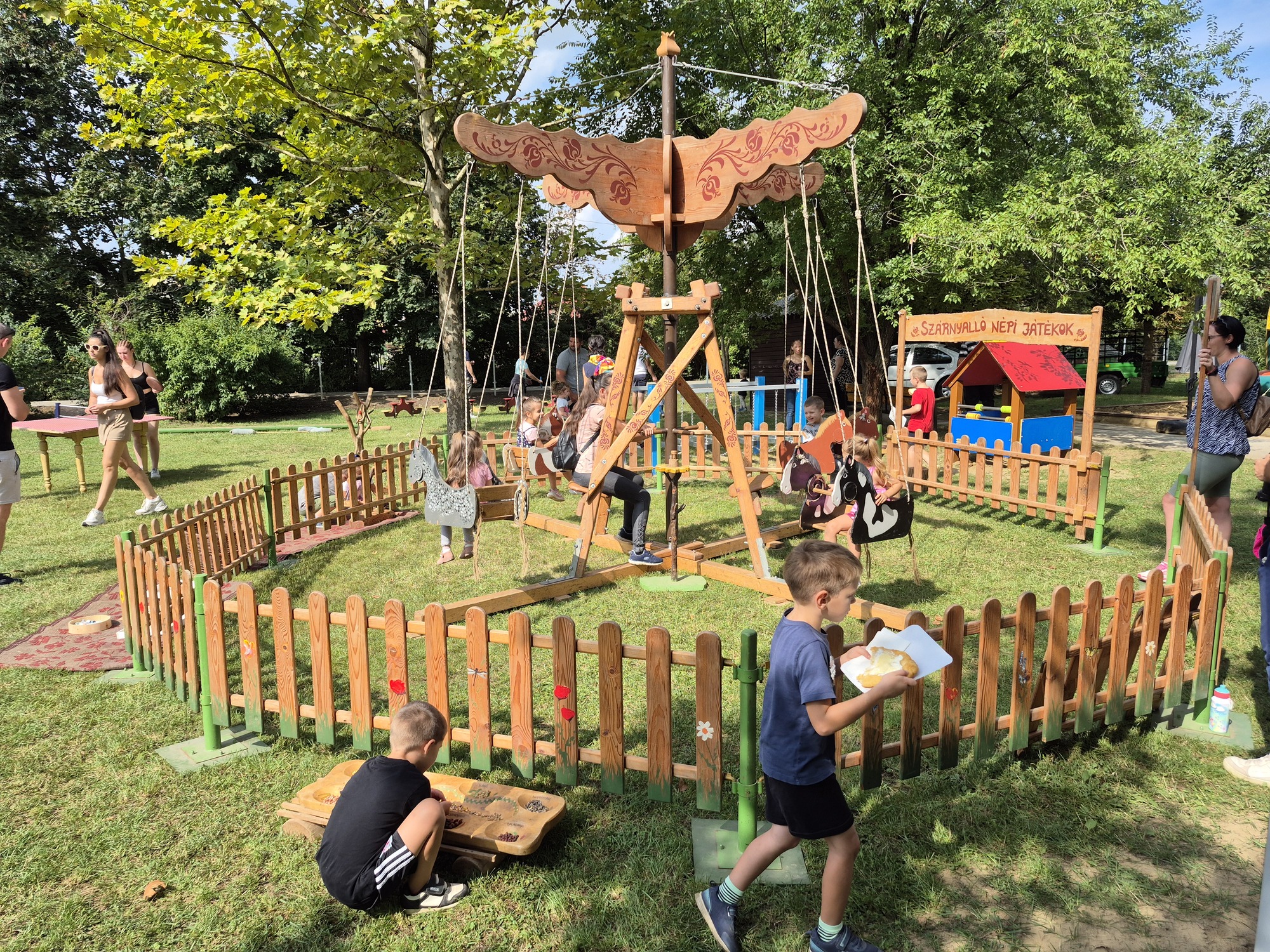 A kreatív népijátékok, az ugrálóvárak rendben felállítva és megérkeztek a lovak is, melyek a gyerekek kedvencei minden évben.