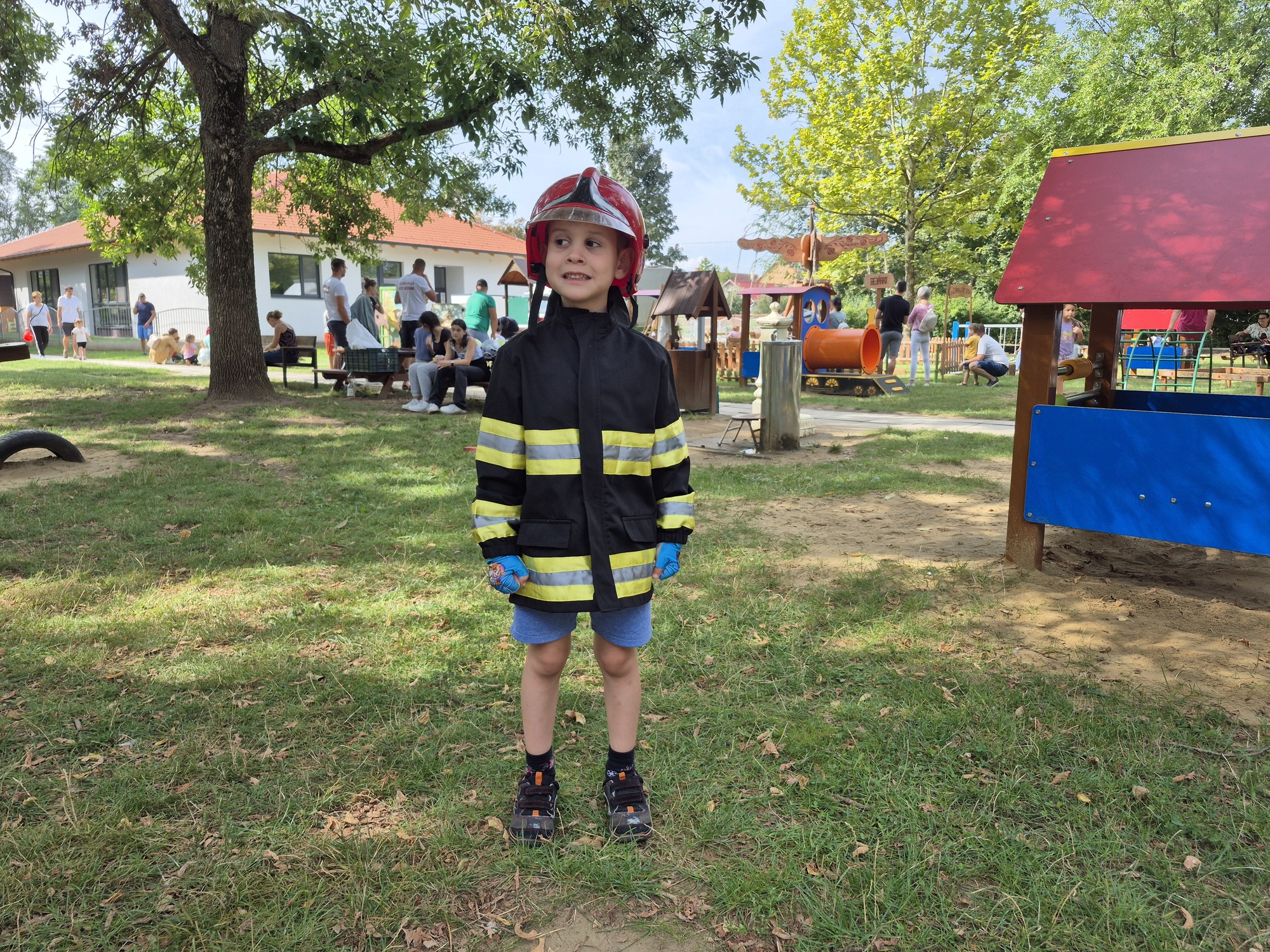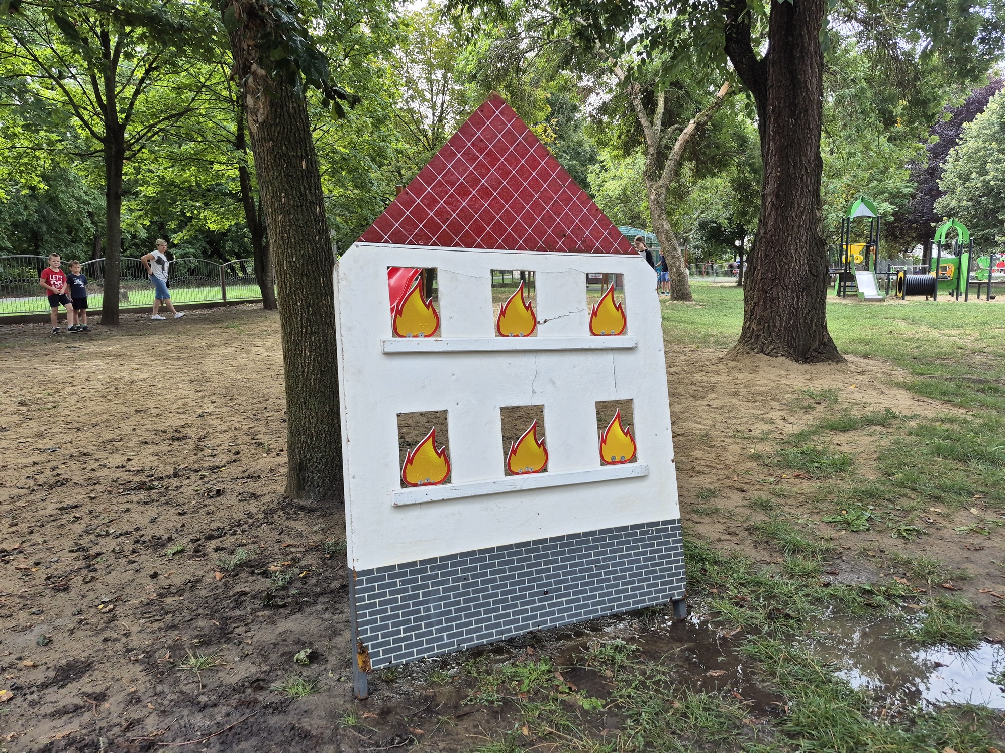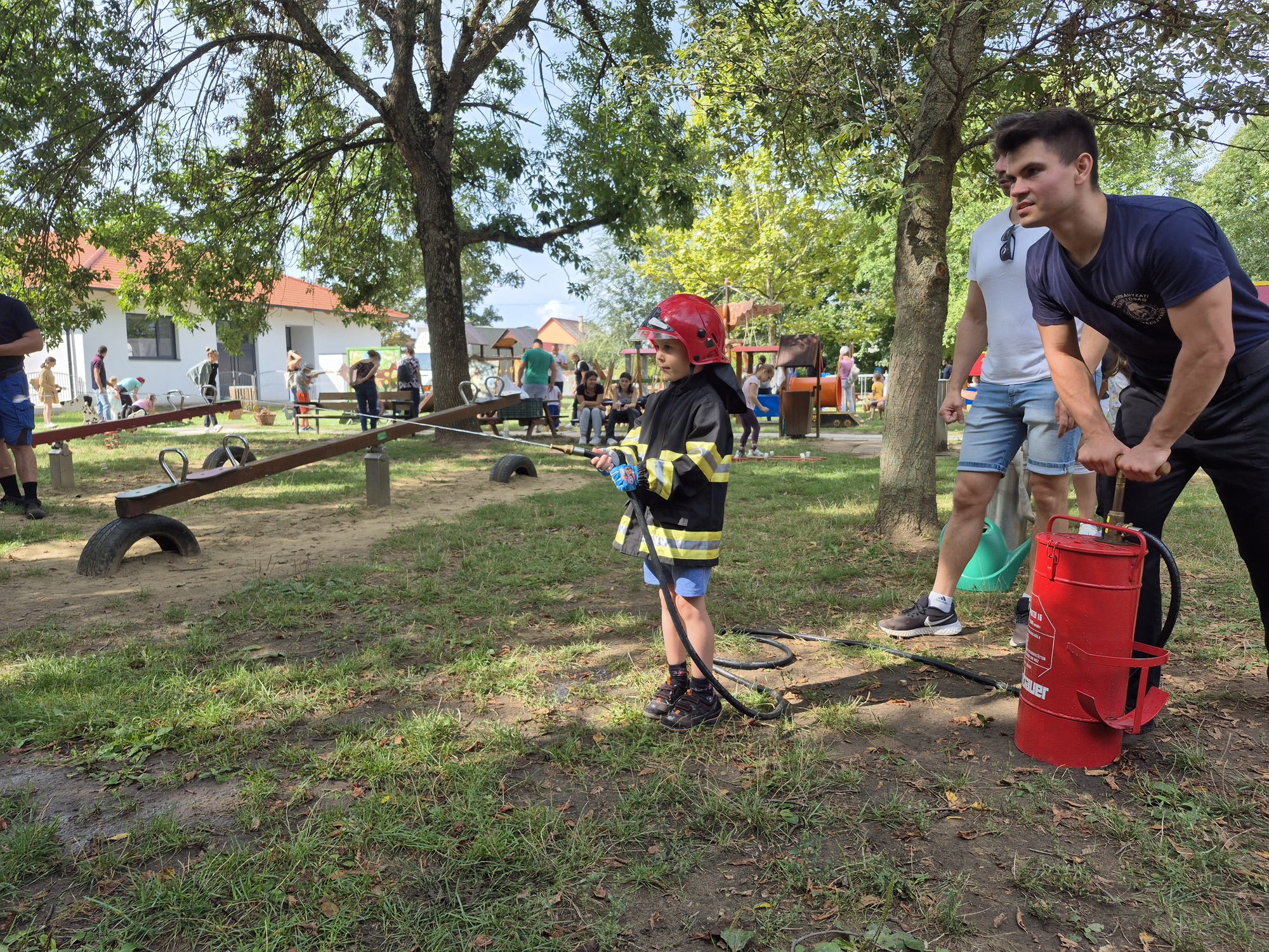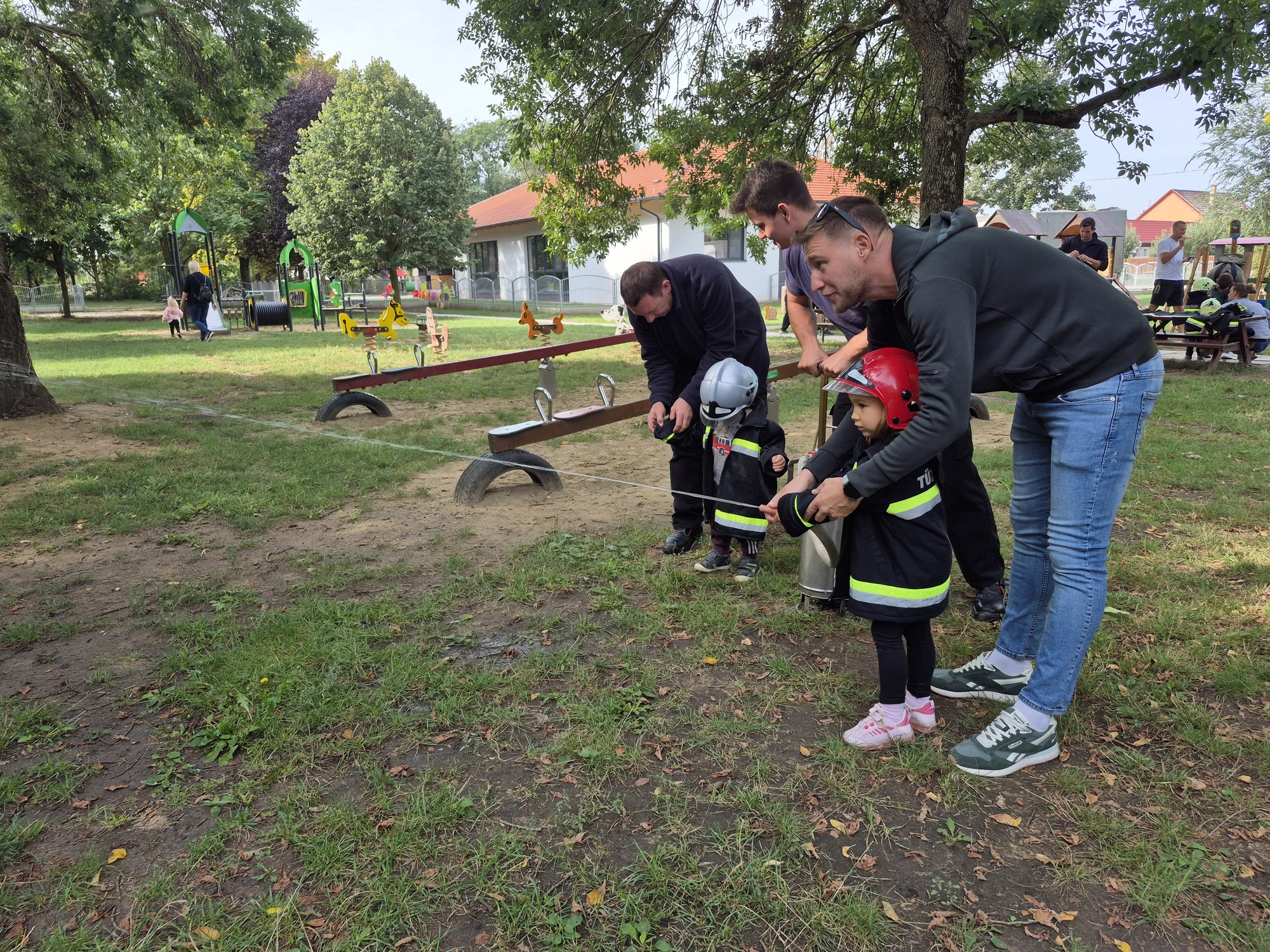 Ha már tűzoltás, akkor meg kell említeni a következő remek ötletet. A kis "tűzoltó" palánták beöltözve kabátba és sisakba ragadták meg a tömlőt és olthatták el a virtuális tüzet. Az intézményi dolgozók pedig szorgalmasan sütötték a lángost és a palacsintát, ezzel segítve az energia pótlását.