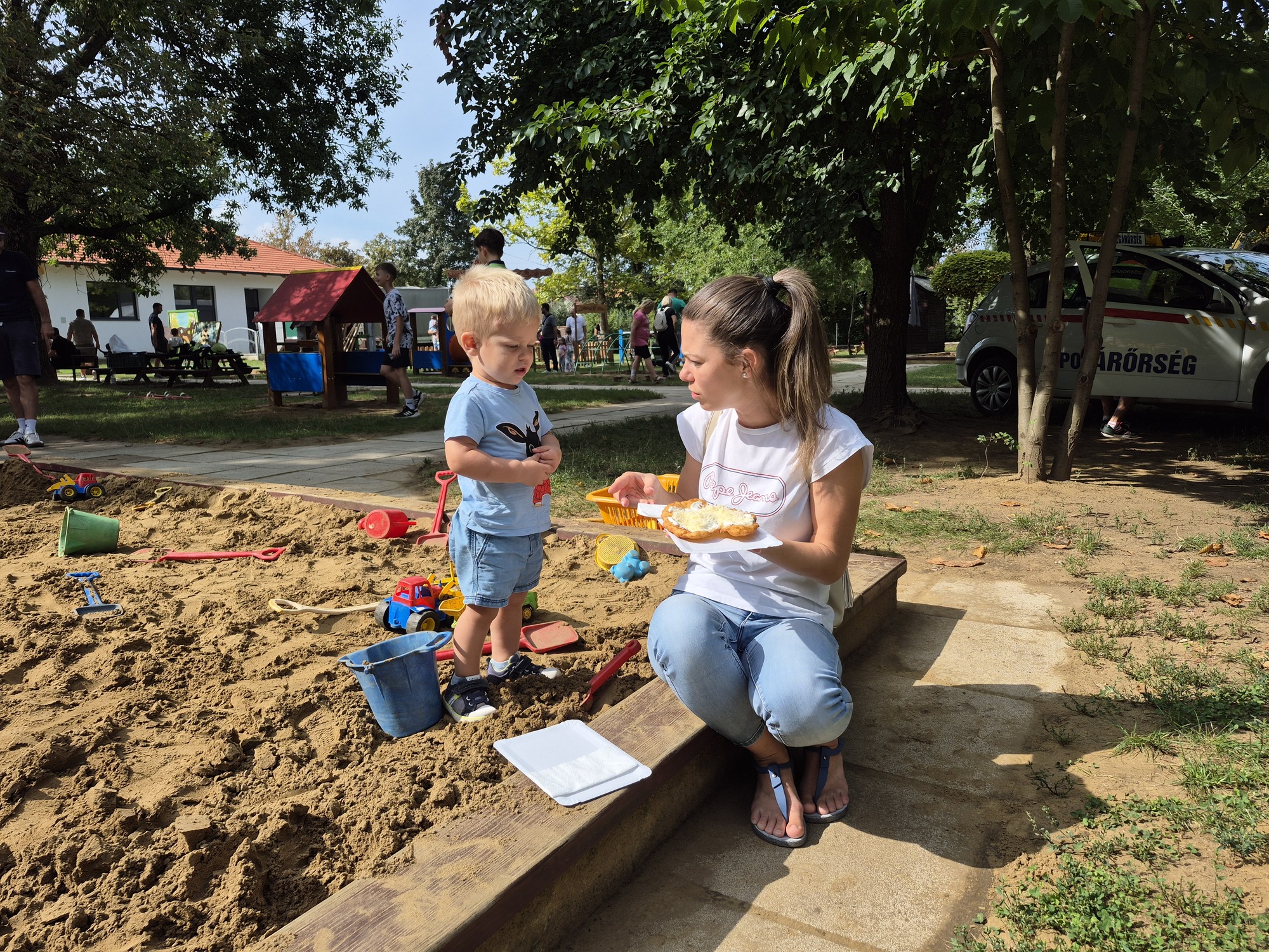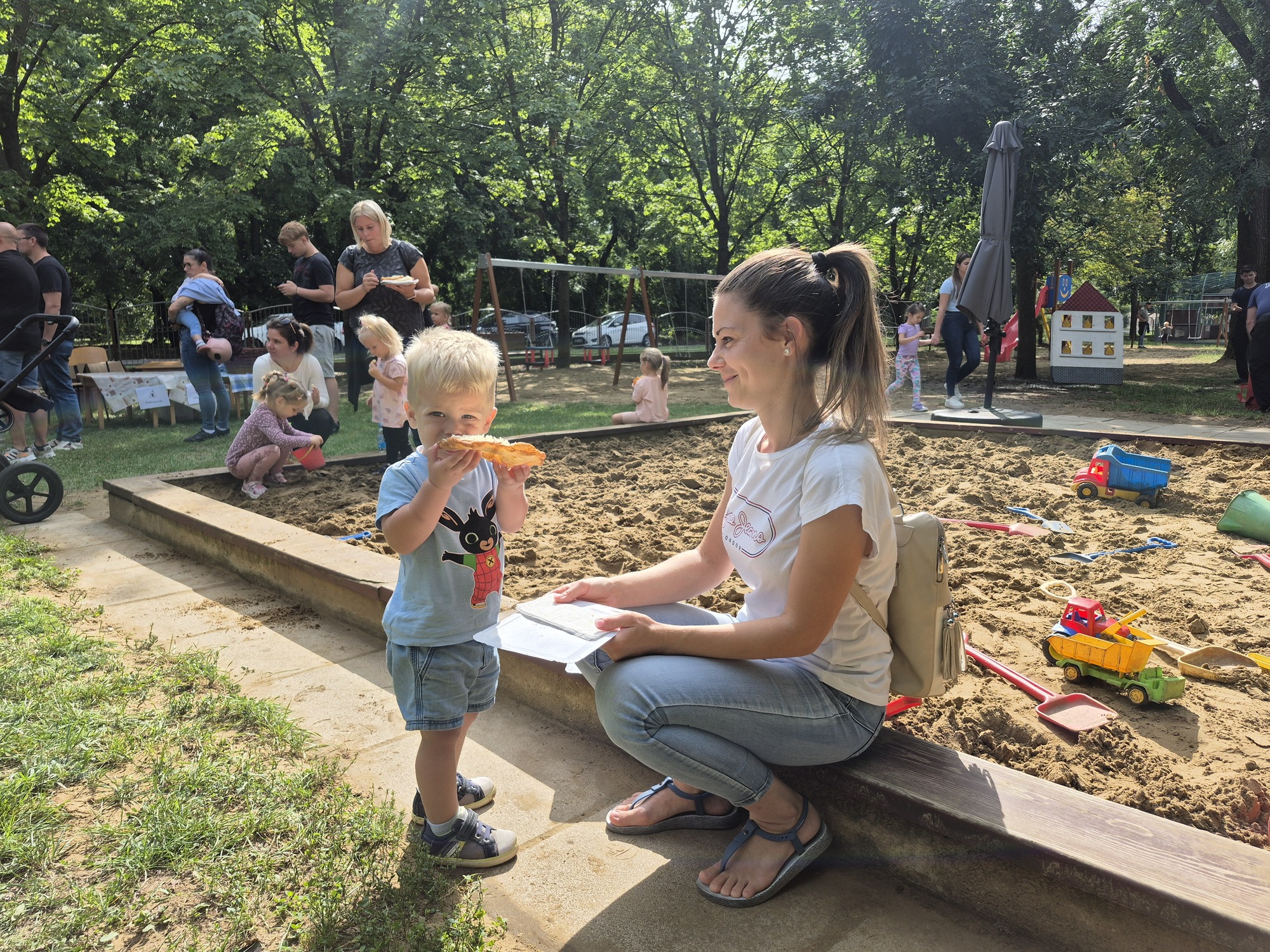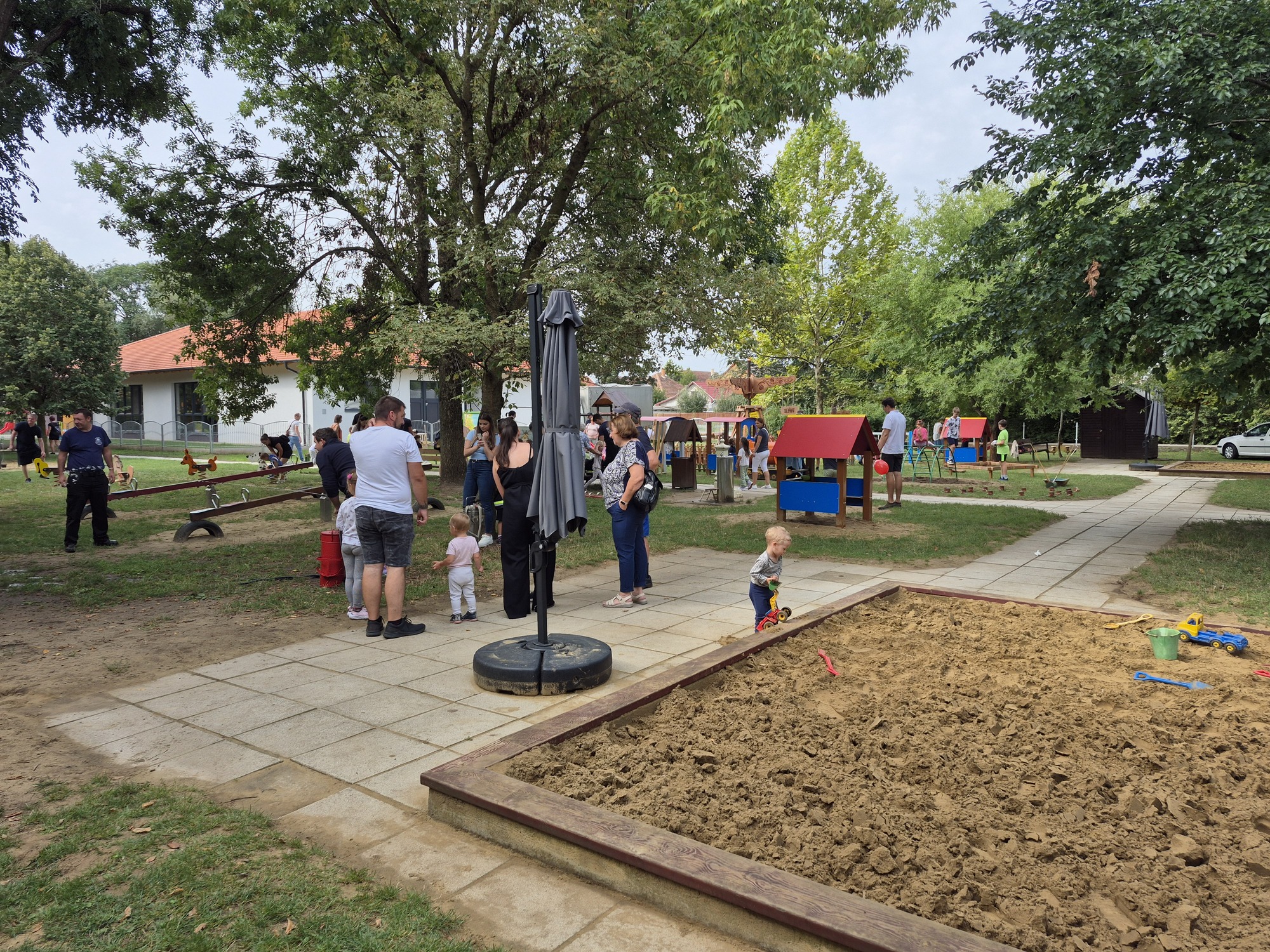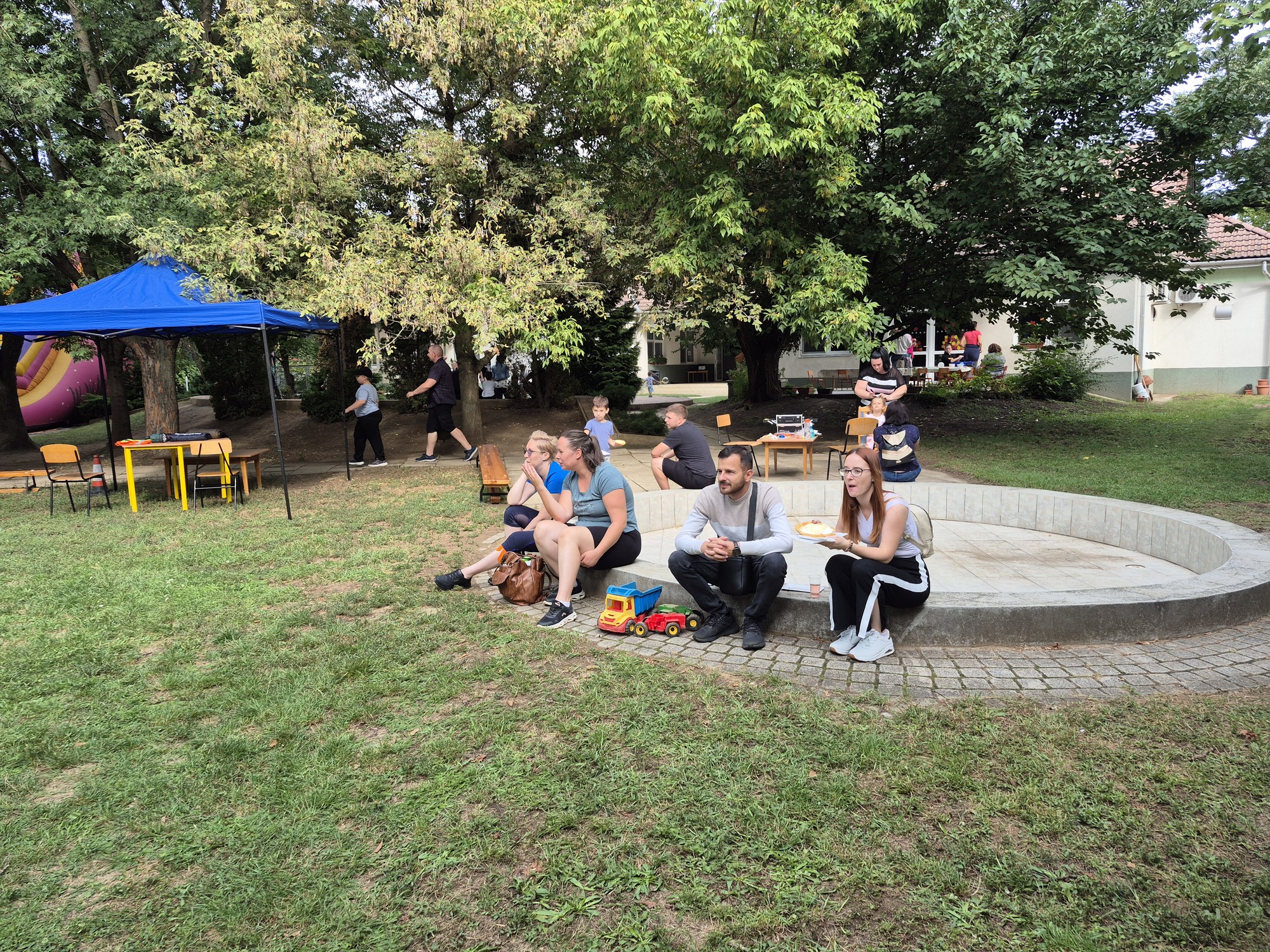 Kilenc óra körül már érkeztek is a látogatók. Szülők, nagy szülők, és természetesen a főszereplő gyerekek is. Az időjárás is kedvezett! Szép napsütése idő volt, és aki az árnyékot kedvelte, a lombos fák alatt megtalálhatta a pihenést.