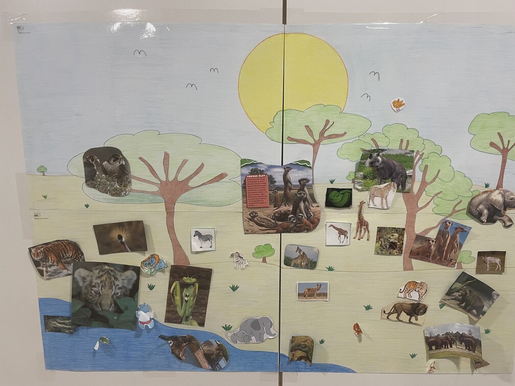 Izgalmas, tartalmas, élményekben bővelkedő, egész heti programsorozatot szerveztem az intézmény gyermekei számára. Minden az állatokról szólt ezen a héten. Állatos képeket ragaszthattak a gyerekek a folyosókon elhelyezett plakátokra, ahol az állatok élőhelyei voltak megrajzolva.