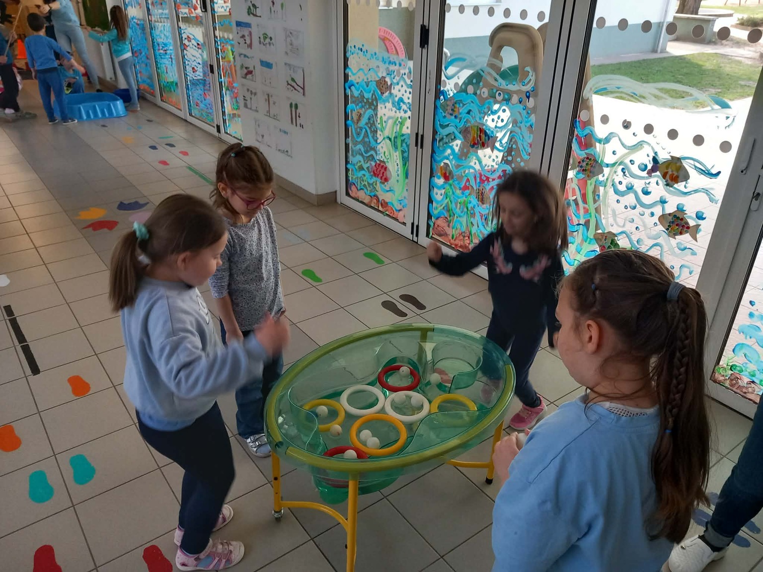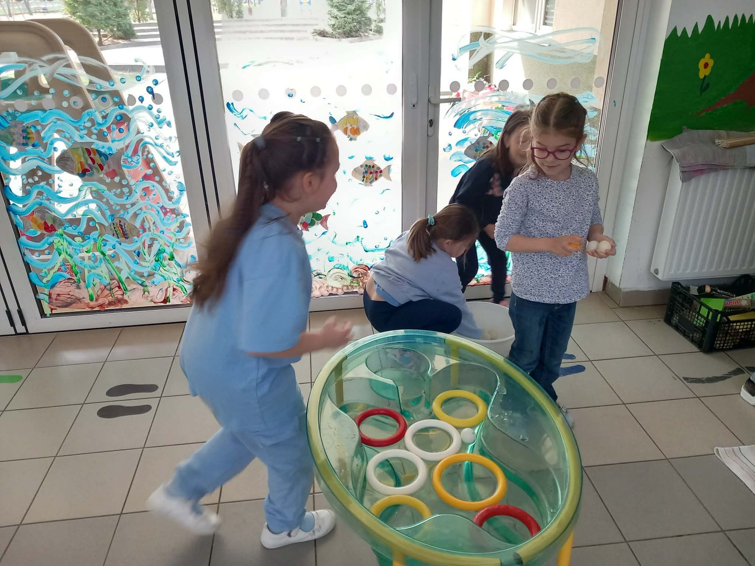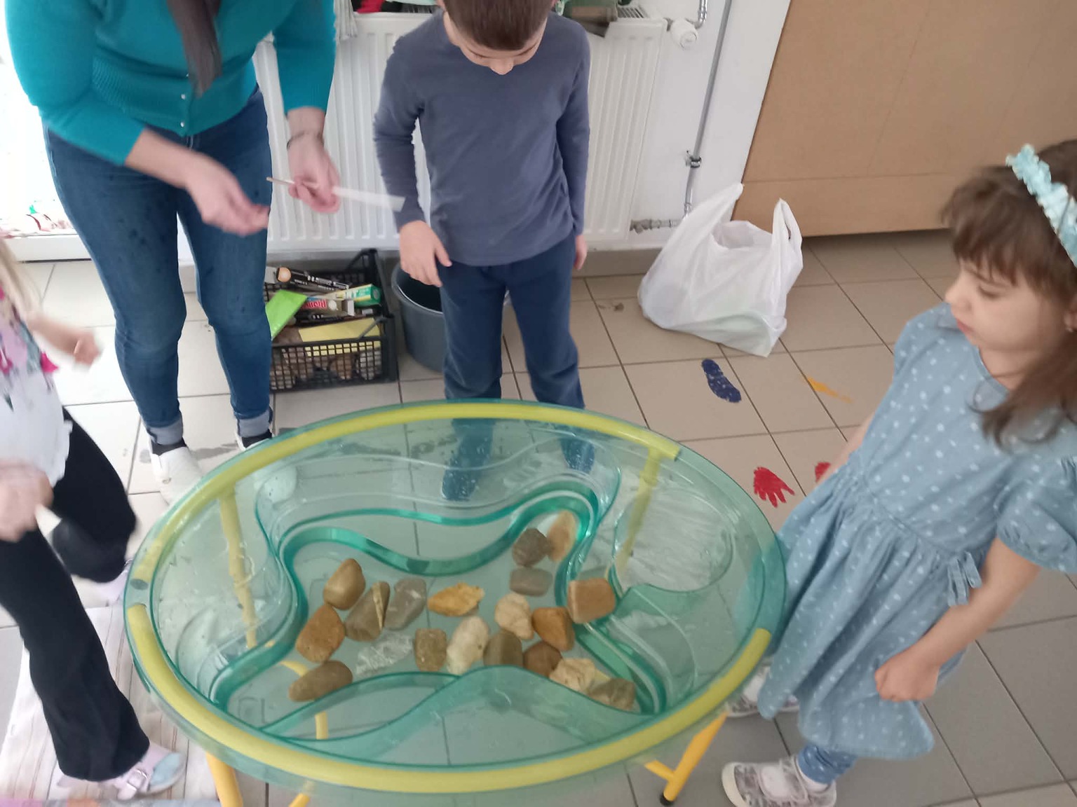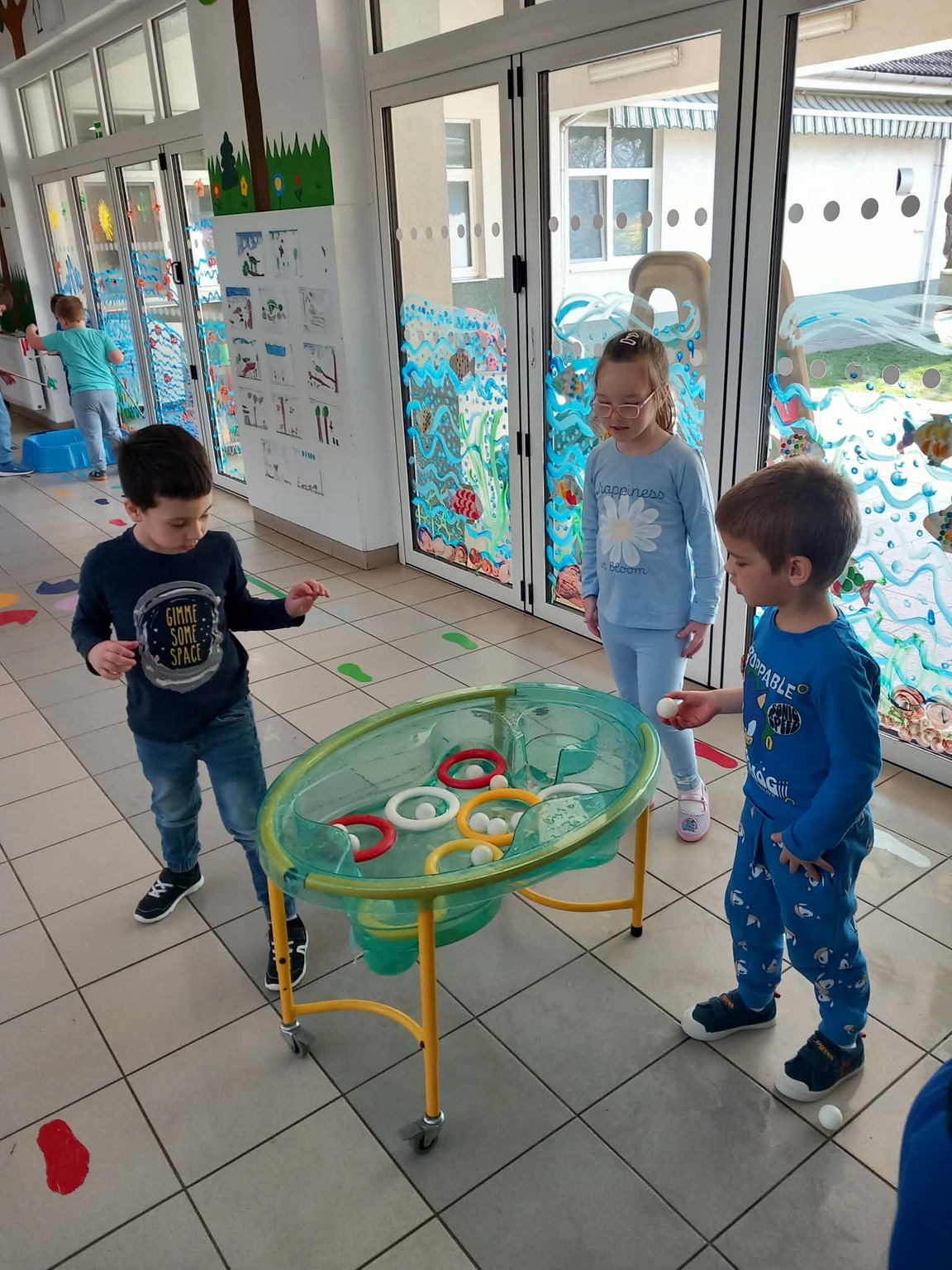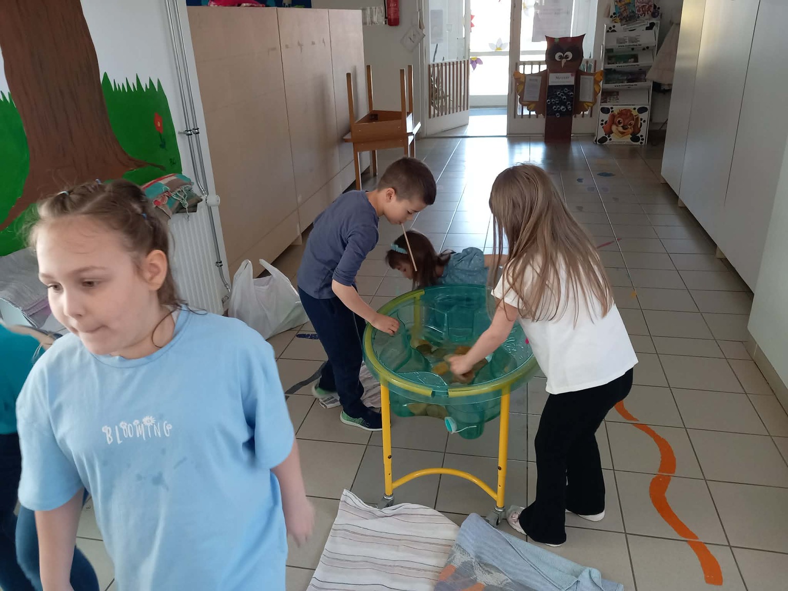 A kisebb gyermekek a csoportszobában festettek, rajzoltak. A sok kis „vízcsepp” (kék ruhás gyermek) látványa, a játék hevétől kipirult arcocskák, a picik ámuló tekintete megerősítették meggyőződésünket: a természet szeretetére, megbecsülésére nevelést már kisgyermekkorban el kell kezdeni, hogy gyermekeink környezettudatosan gondolkodó felnőtté válhassanak.